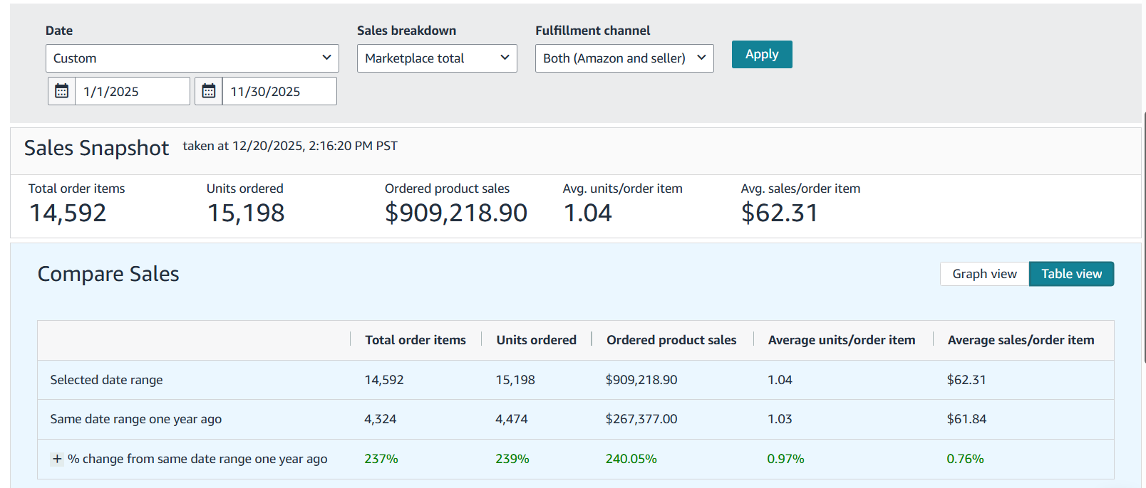 Jan 1, 2025 – Nov 30, 2025 Performance
